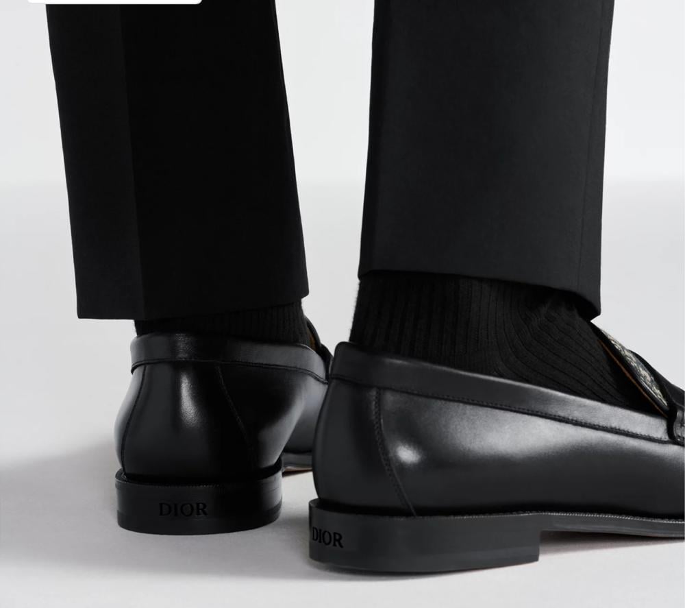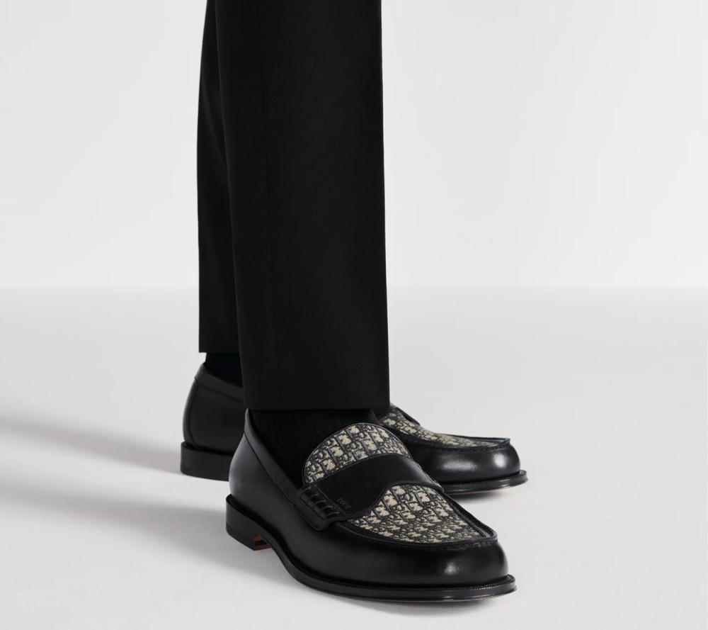 أحذية رجالية إيطالية رسمية تقدم مزيجًا من الفخامة والأناقة، حيث يجمع حذاء Dior الأسود الملكي بين جلد العجل الأملس قماش جاكار Dior Oblique الأيقوني، مع حزام Saddle جلدي