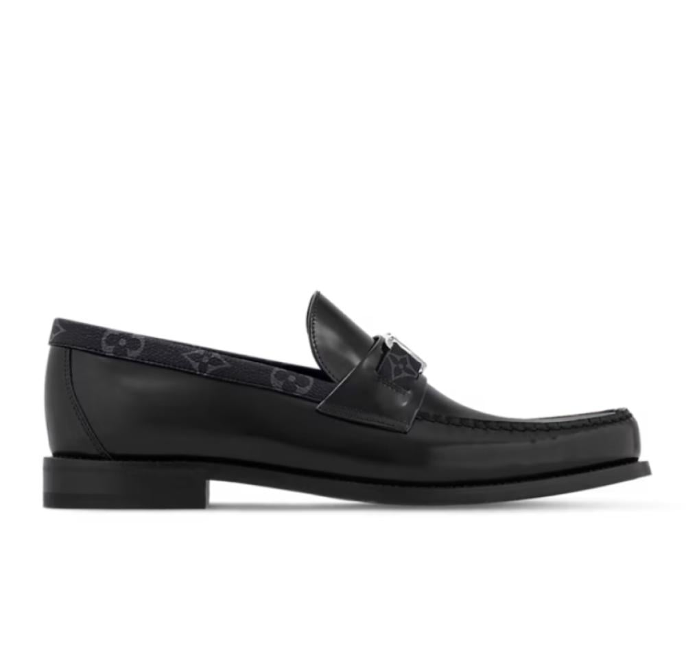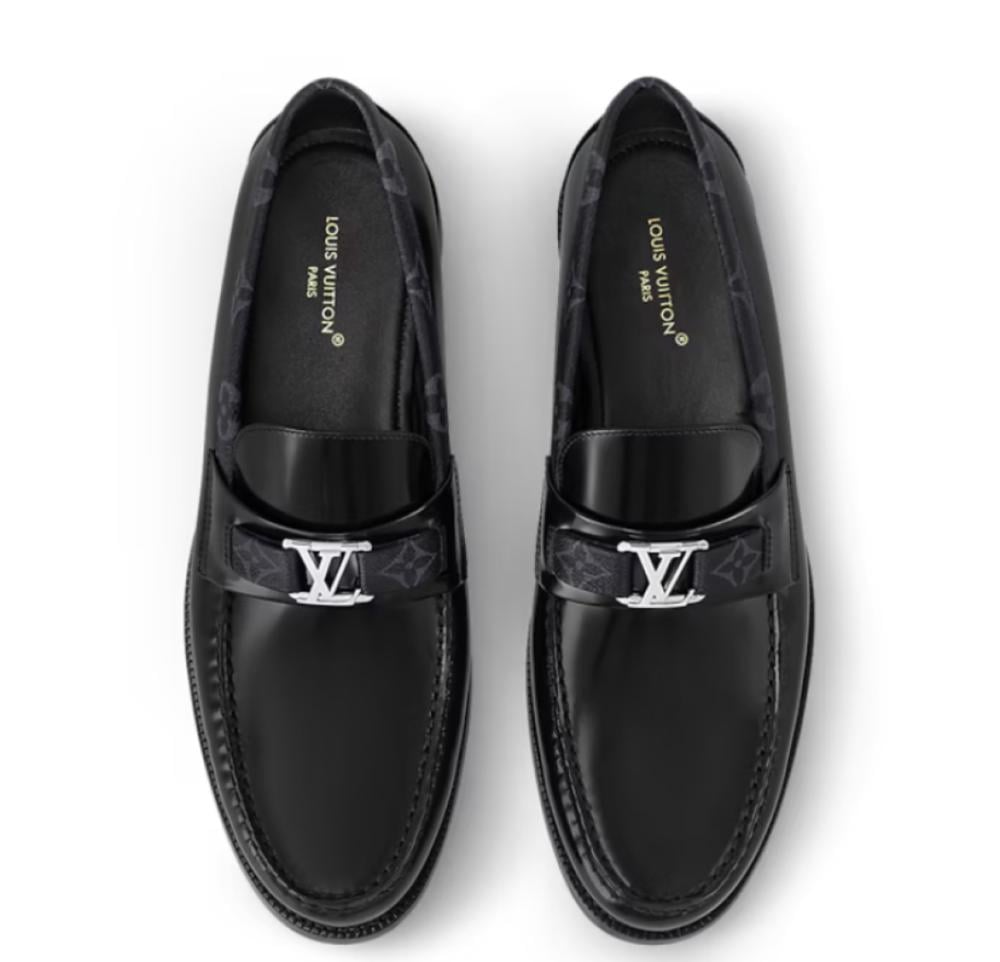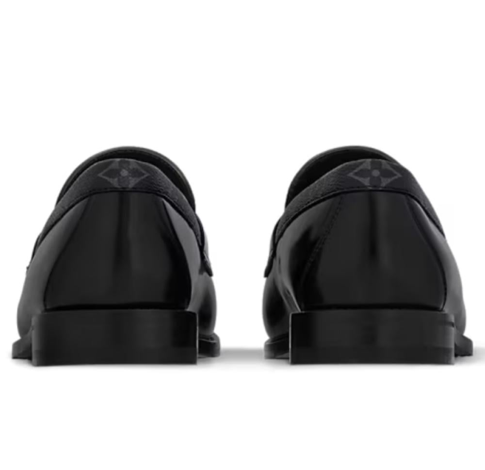 افضل حذاء رسمي رجالي يقدم شوز لويس فيتون أسود رسمي جلد بتصميم "لوفر" كلاسيك يجمع بين الأناقة والراحة. مصنوع من جلد العجل الفاخر مع شريط Monogram Eclipse الشهير وحلية معدنية تحمل شعار LV