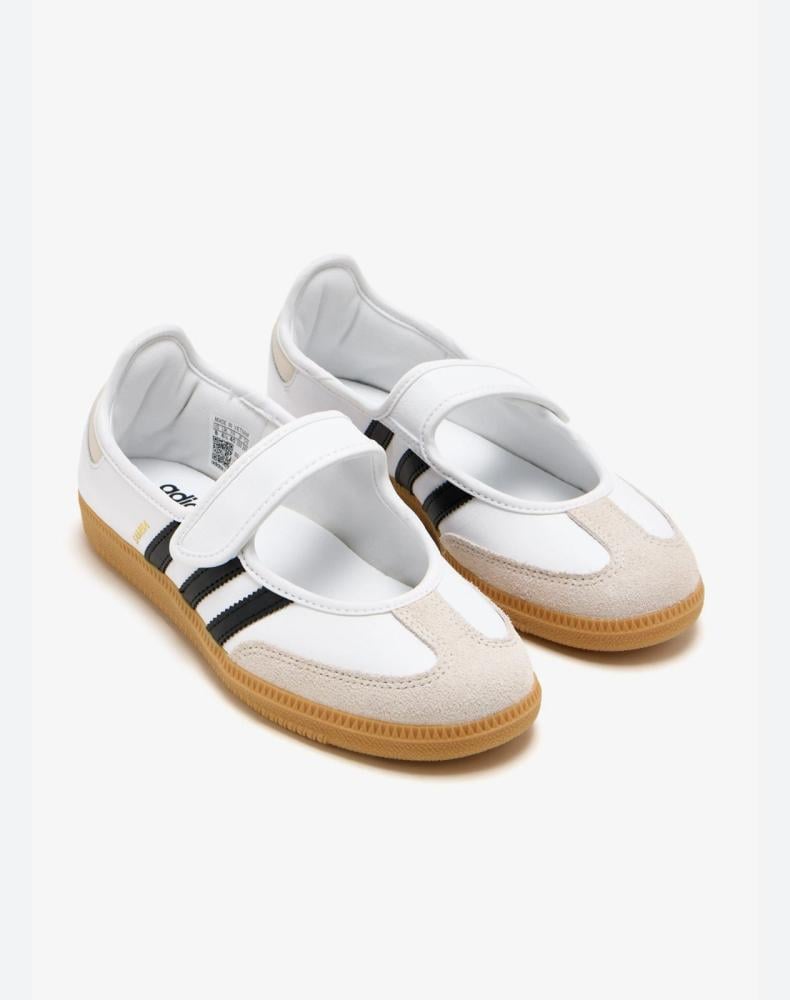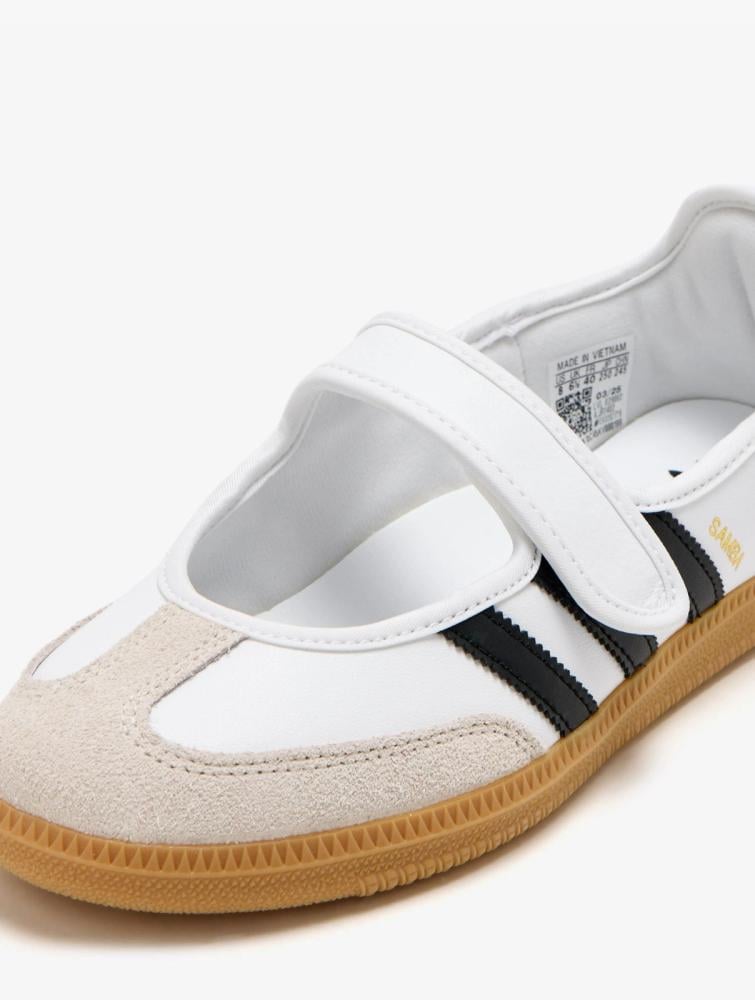 • تصميم سنيكرز اديداس سامبا جين كلاسيكي بالجلد الأبيض الفاخر، يناسب جميع الأذواق والمناسبات.